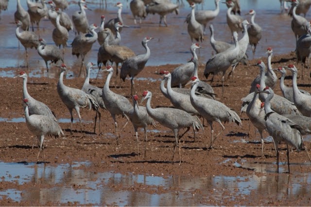 The Sandhill Cranes began coming back into the pond area around 10 am (the were leaving around 6-6:30 am)